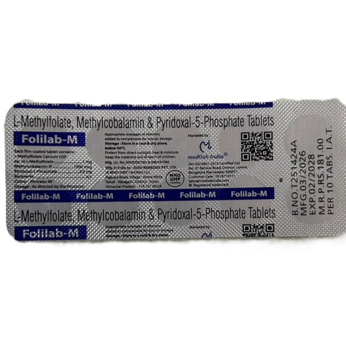 Folilab-M is a specialized nutritional supplement formulated for the comprehensive management of nutritional deficiencies. By combining the most biologically active forms of Vitamin B9, B12, and B6, it provides superior absorption and targeted support for nerve health, red blood cell formation, and maternal wellness.