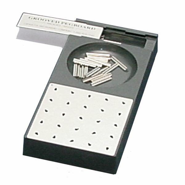 The Grooved Pegboard is a dexterity test consisting of 25 holes with randomly positioned slots. Pegs with a key on one side must be rotated to match the hole before they can be inserted. This test is used extensively to evaluate lateralized brain damage in children and adults, or whenever manual dexterity is an issue.